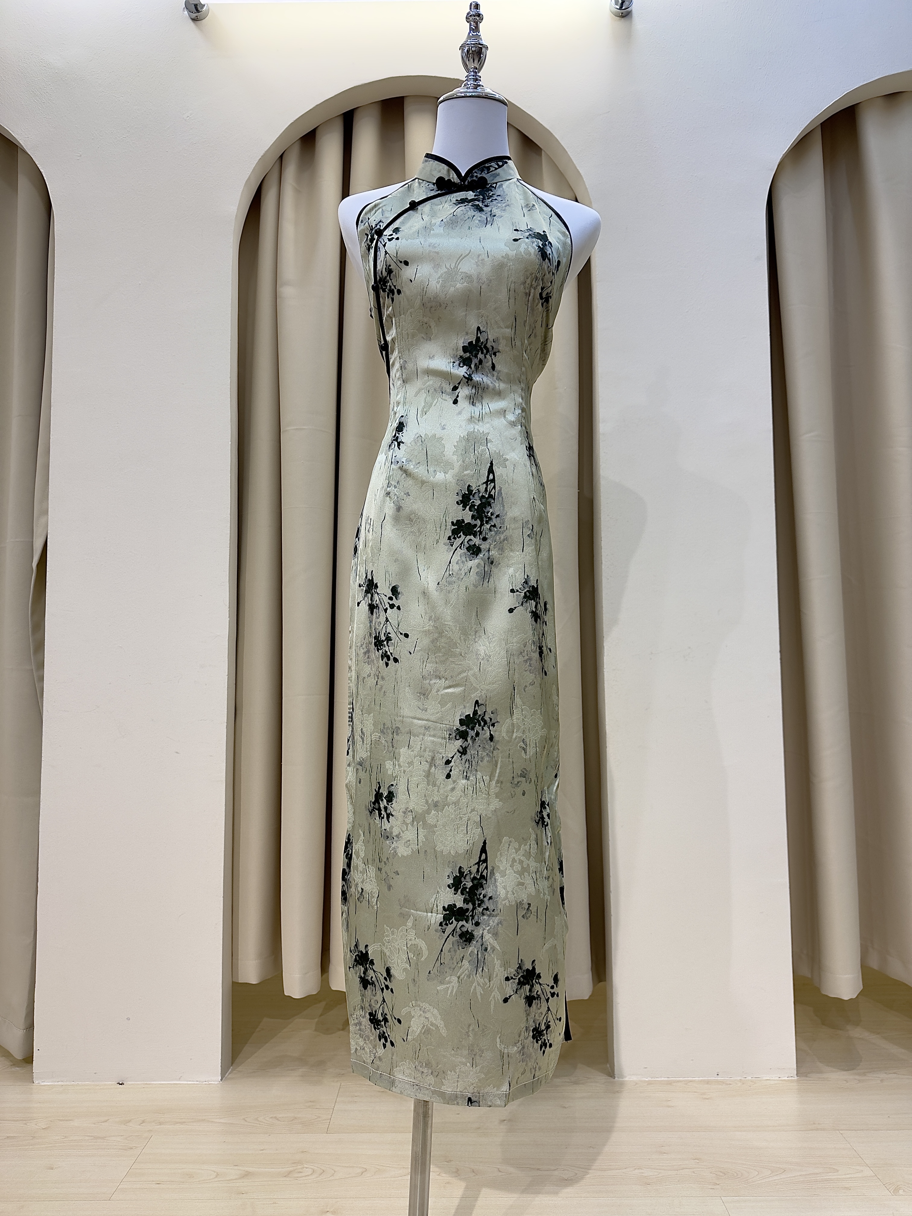 无袖挂脖新中式长款旗袍