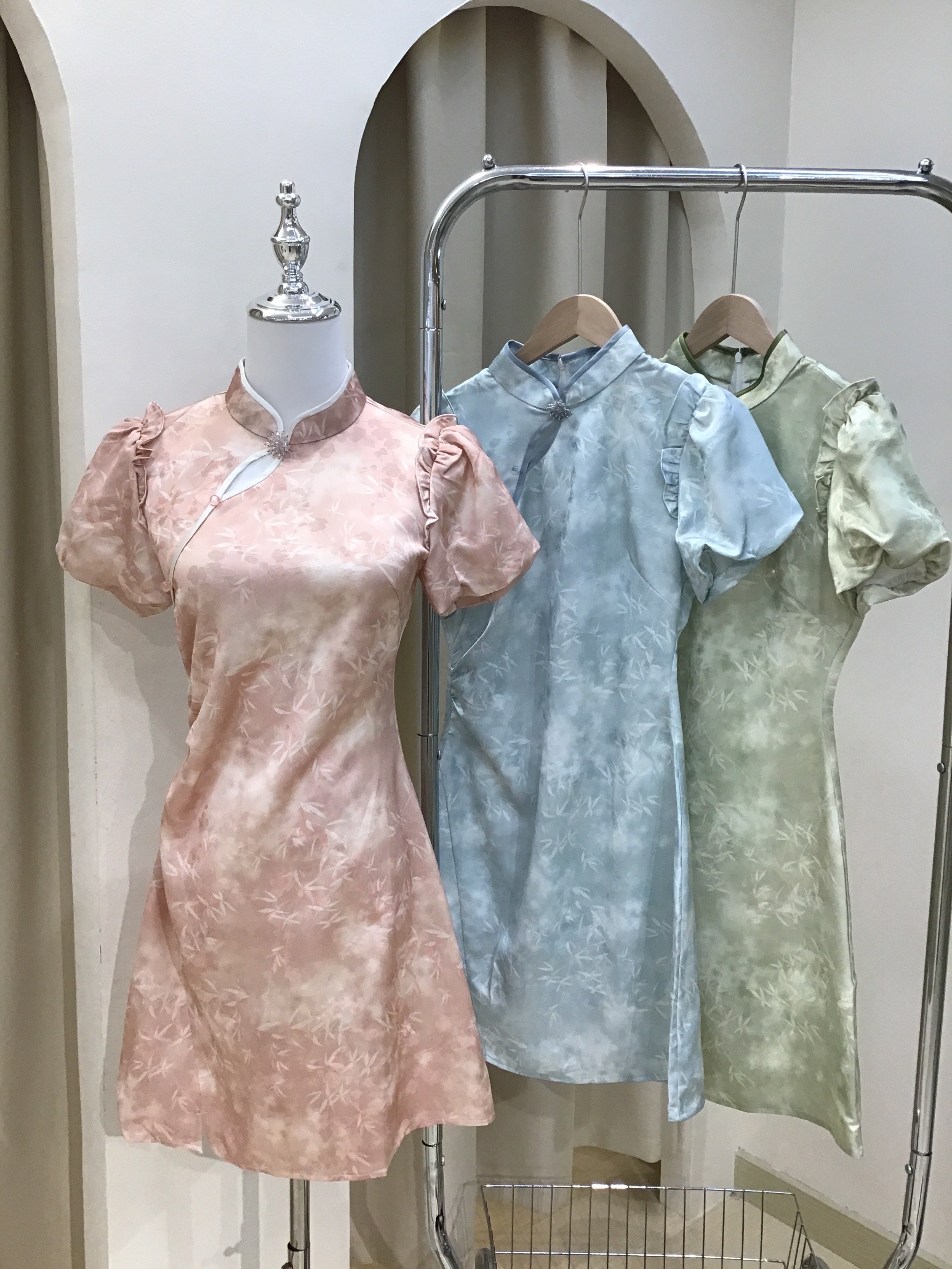 甜美风泡泡袖旗袍