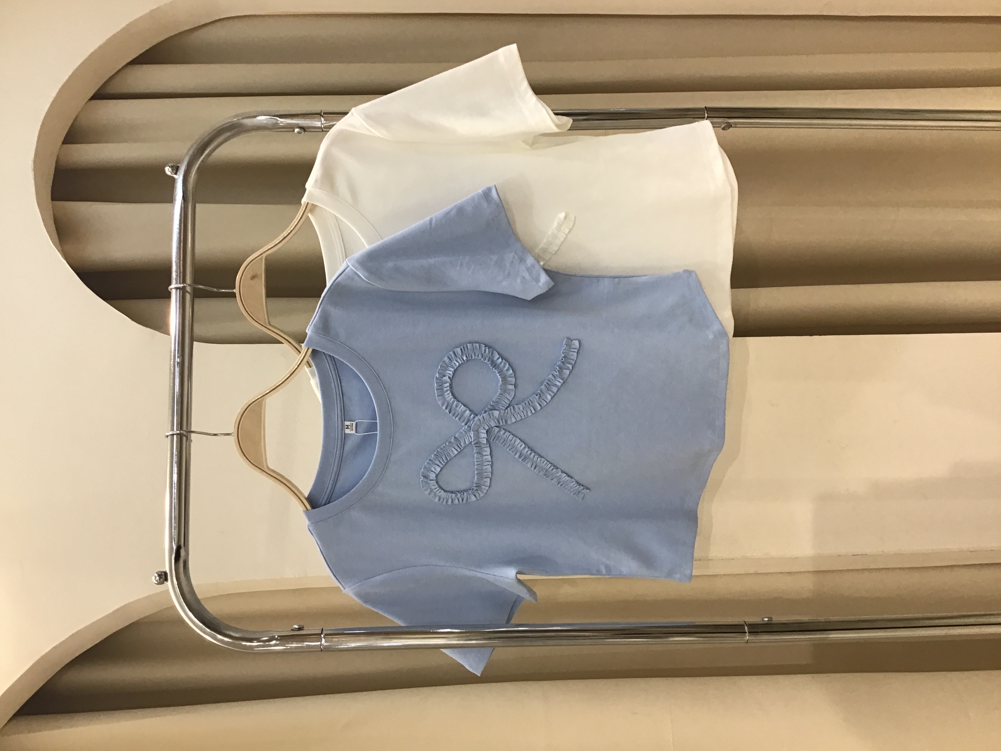 蝴蝶结正肩短T