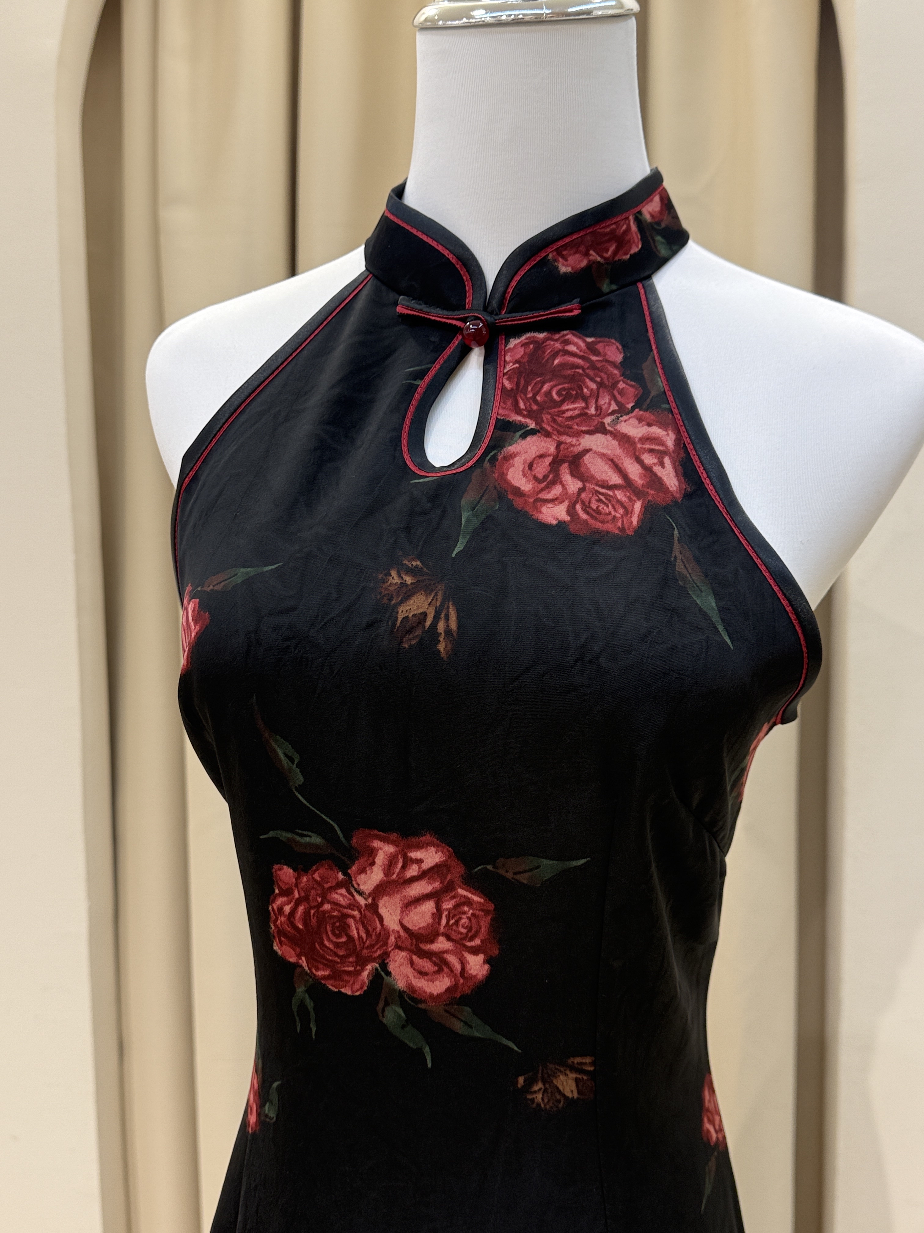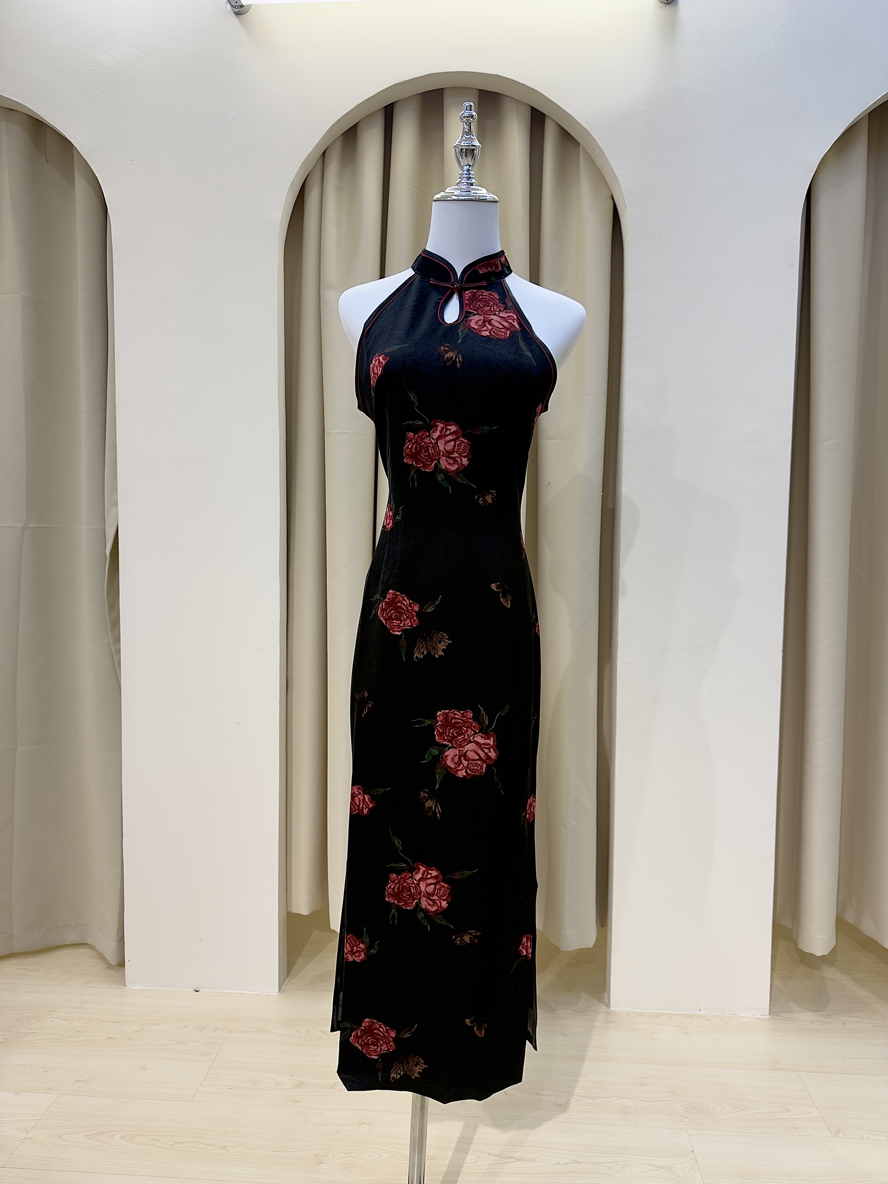 黑色国风无袖旗袍