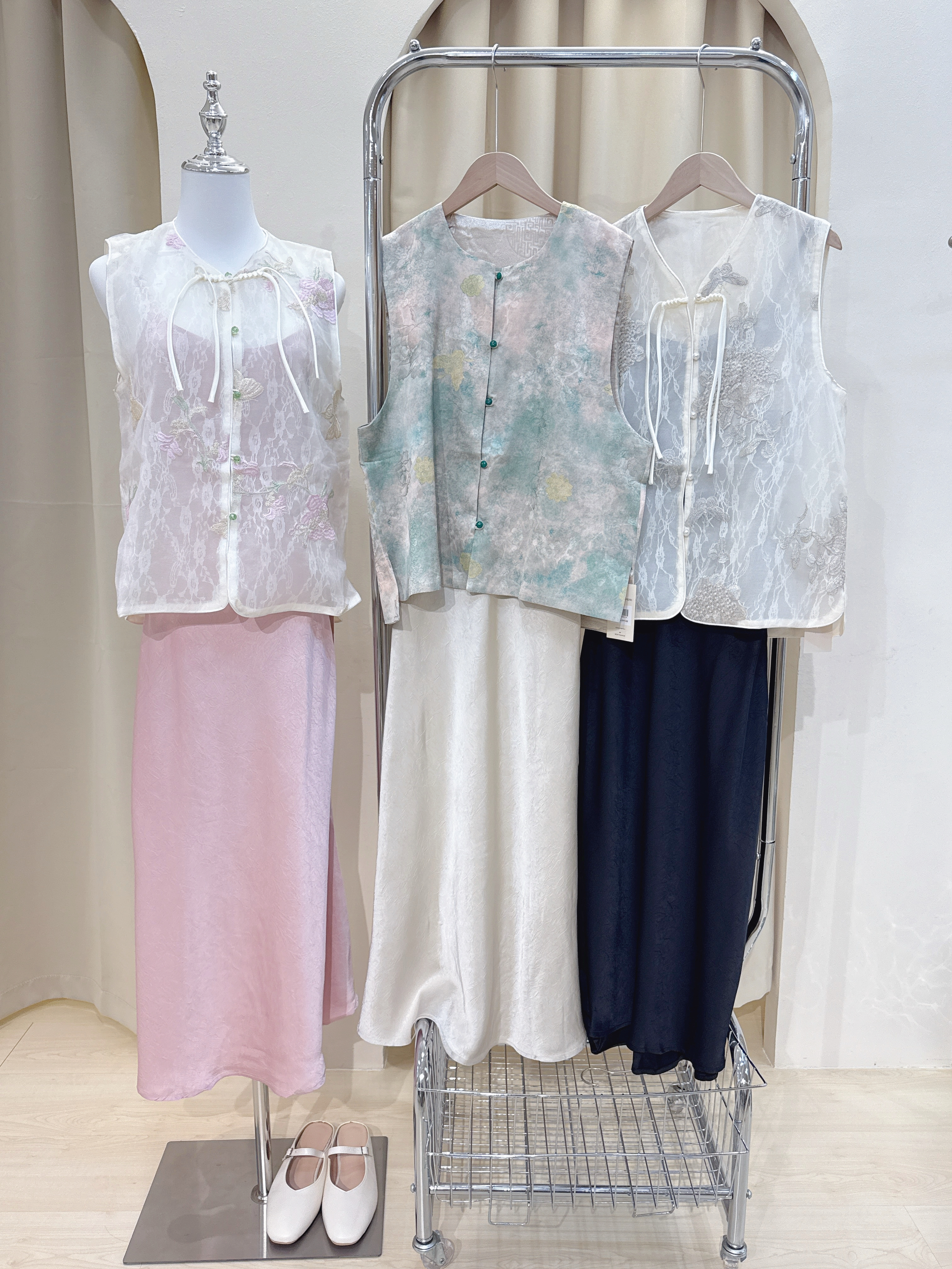 欧根纱刺绣马甲裙两件套