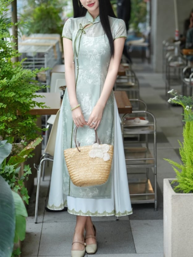 竹叶古风刺绣旗袍